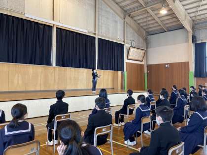 1学年最初の学年集会 公開日 2021/04/09 更新日 2021/04/09 1学年 1学年最初の学年集会がありました。1学年担当の各先生から、中学校生活で大切にしてほしいことが伝えられました。また、保健室の使い方などの説明がありました。