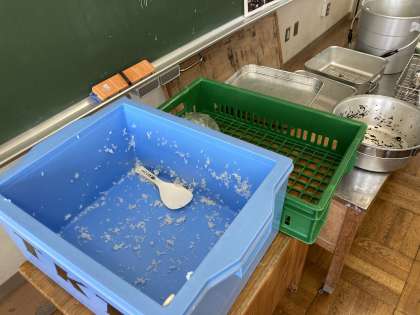 1学年最初の給食・清掃 公開日 2021/04/09 更新日 2021/04/09 1学年 1年生にとって中学校で初めての給食がありました。残食0、完食を目指してみんな頑張りました! また初めての清掃も、短い時間で綺麗にできるよう、精一杯頑張りました!