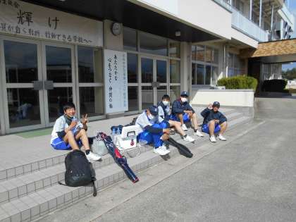 野球部は試合でした。西部中学校と戦い、見事10対4で勝利しました。試合後、玄関前でほっとする野球部員が、笑顔で報告してくれました。