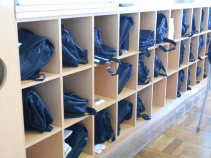 また、教室後方にある一人ひとりに割り当てられたロッカーには、はみ出さず各自の鞄や物が置かれています。