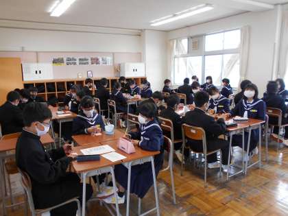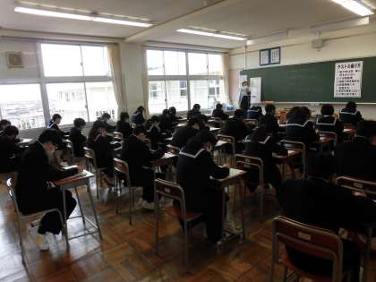 1学年。今日はテスト2日目(社会と英語)でした。長いリスニング問題にも集中して取り組んでいました。
