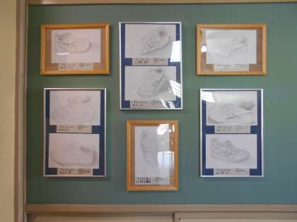 校舎のあちこちに生徒の美術作品が飾られています。写真は会議室前廊下の作品です。作品が学校生活に潤いを与えてくれています。絵を見て、ちょっと一息をつく心の余裕をもちたいものです。