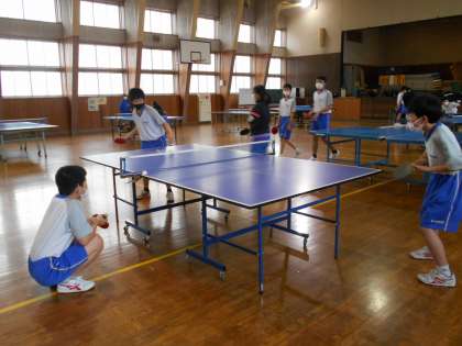 放課後の部活動 公開日 2021/04/16 更新日 2021/04/16 山室中学校のページ 4月16日(金) 【バレーボール部】 第一体育館では、バレーボール部がサーブカットとサーブ練習です。5月のBBT杯に向けて練習にも熱が入ります。 【卓球部】 男女共にゲーム練習です。いつ見ても黙々と練習に励む卓球部です。