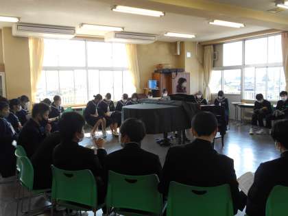 円座になって滝廉太郎さんの曲を鑑賞したり、詩の内容を味わったりしています。