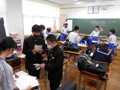 また、部活動発会式後の時間を使って、掲示用の紙を仕上げました。習字が得意な生徒が力を発揮しました!明日の学年集会で発表予定です。