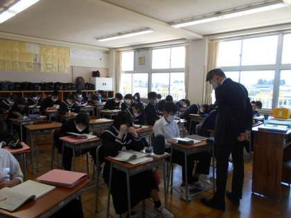 授業風景〜2年3組〜 公開日 2021/04/26 更新日 2021/04/26 山室中学校のページ 4月26日(月) 国語では「アイスプラネット」の学習です。「文学的文章を正確に読もう!」の学習課題の下、登場人物、場面、情景描写等に注意を払いながら読みます。 友達の音読に、しっかり耳を傾けます。