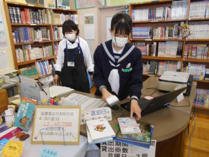 今週は特に、ゴールデンウィーク前ということで、たくさんの生徒が図書室に来ています。友達同士、以前に読んだ本の感想を交わしたり、友達に本を薦めたりしています。図書委員もチャイムが鳴るぎりぎりまで貸し出し作業に追われていました。