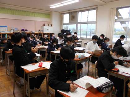 6時間目に学級討議を行いました。さすが3年生、学級討議にも慣れ、進行や説明が大変スムーズでした。生徒会の一員として、予定されている活動に積極的に協力できるよう、一人一人が疑問点や改善案を真剣に考えていました。