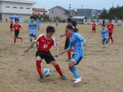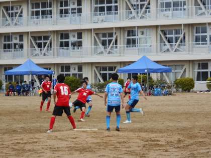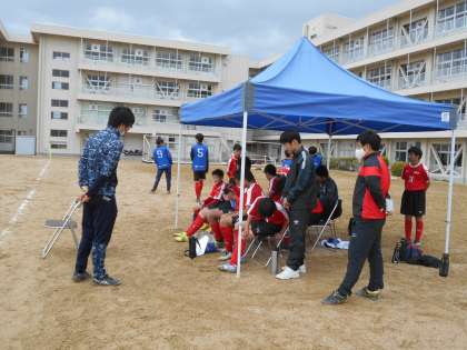 グラウンドでは、サッカー部が高円宮杯U−15富山県リーグ戦に臨んでいます。対戦相手は新庄中学校です。粘り強く相手に絡んで、前半1−0、後半2−0で見事勝利しました!おめでとうございます!