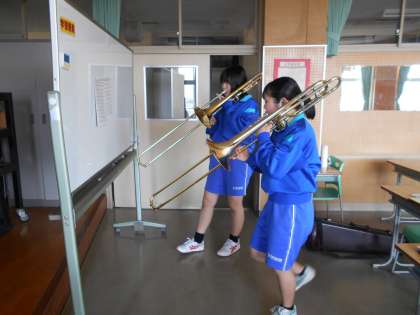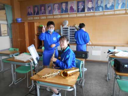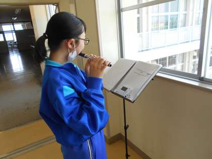 音楽室には、練習が終わったはずの吹奏楽部員の姿が。「今日の練習で合わなかった音程やリズムの練習をしています。」と自主練習の真っ最中でした。素晴らしい!