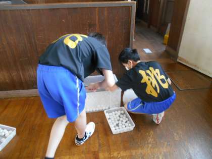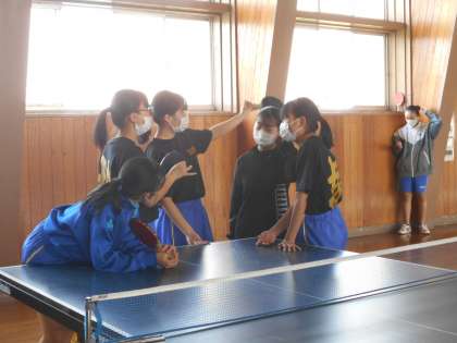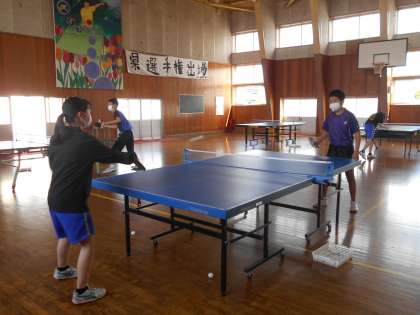 GW後半の部活動その2 公開日 2021/05/04 更新日 2021/05/04 山室中学校のページ 5月4日(火) 第2体育館では、卓球部が練習しています。「何の練習をしているの?」と尋ねると「各自の課題の練習です。」との返答。どうやら、練習の最後の試合に向けて、各自が課題としている内容を重点的に練習しているようです。素晴らしい! (写真上:練習用の球を補充) (写真中:課題練習をどのような組み合わせで、どう行うか相談中) (写真下:各自の課題を繰り返し練習します。)
