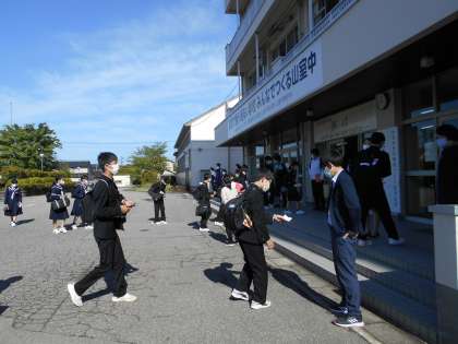 GW明けの一日がスタート! 公開日 2021/05/06 更新日 2021/05/06 山室中学校のページ 5月6日(木) 「おはようございます!」先生と生徒の声が飛び交う、久々に賑やかな玄関前です。前庭のつつじも満開で生徒を迎えます。