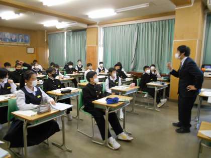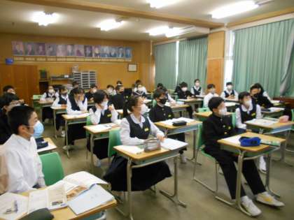 授業風景1年1組 公開日 2021/05/07 更新日 2021/05/07 山室中学校のページ 5月7日(金) 音楽ではヴィヴァルディの「四季」を鑑賞しています。曲想や使われている楽器について寺西先生と楽しそうに話し合っています。