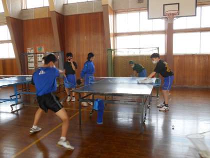 体育館も暑いです! 公開日 2021/05/08 更新日 2021/05/08 山室中学校のページ 体育館では、バドミントン部、卓球部が活動中です。今日は体育館も暑いです。熱中症に気を付けながら活動しましょう! 【写真上・中:バドミントン部】 女子はネットを挟んでヘアピン練習、男子は半面を使ってシングルの打ち合いです。 【写真下:卓球部】 同じ場所に何球も球を出してもらい、フォームを確認しながら打ち込みます。球拾いも頑張っています!