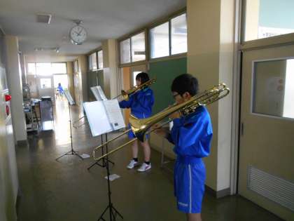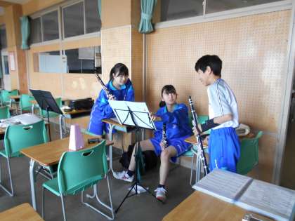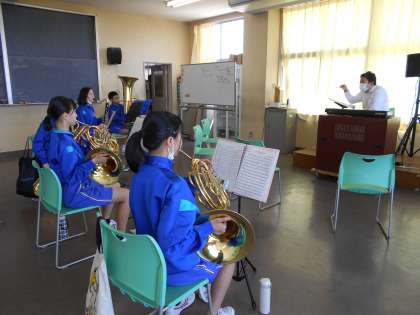 外の陽気に負けないぐらい、音楽室の吹奏楽部も熱い練習を繰り広げています。