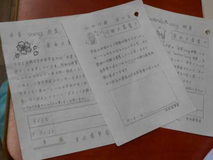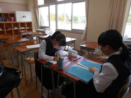 放課後、教室では文化委員長が川柳募集のプリントを作成しています。みんなに楽しく参加してもらえるように、プリントに可愛らしいイラストを描いています。たくさんの応募、お待ちしています!