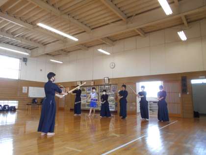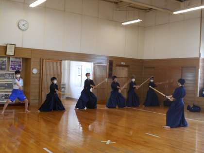 放課後の部活動その1 公開日 2021/05/12 更新日 2021/05/12 山室中学校のページ 5月12日(水) 剣道部は、基本の素振りをしています。ここで問題です!下山先生はどこにいるでしょうか?探してみてください。