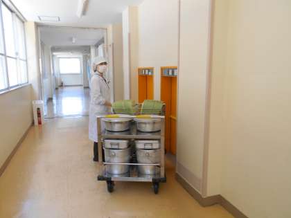 給食前の配膳室では・・・