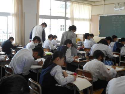 授業風景1 公開日 2021/05/18 更新日 2021/05/18 山室中学校のページ 5月18日(火) 【3年2組:音楽】 鑑賞の授業で、表現の工夫等ワークシートにまとめています。 【2年3組:数学】 数学はT1、T2の先生がまわりながら生徒の質問に答えています。 【3年4組:技術】 インターネット通信の仕組みについて学んでいます。