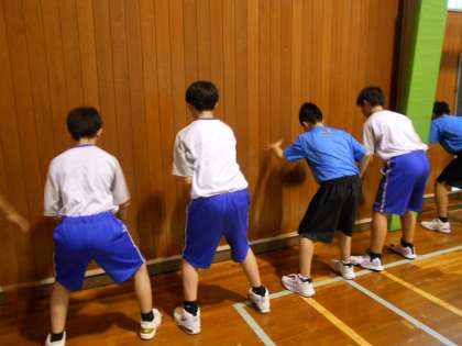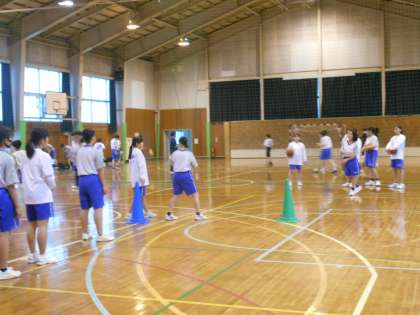 5月20日(木) バスケットボール部は、1年生に先輩がついて教えています。