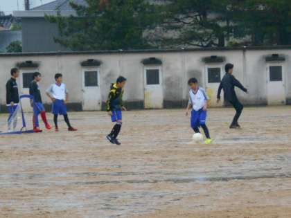 今日も雨の中、懸命にボールを追いかけます。