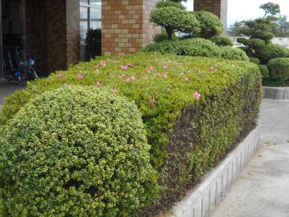 前庭を見ると、散髪を終えた木々が美しいフォルムで並んでいます。まさに職人技です。きれいに木々を整えてくださった、業務長の若林さん、ありがとうございます!