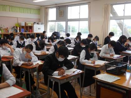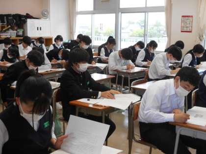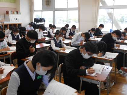 3年 全国学力学習状況調査 公開日 2021/05/27 更新日 2021/05/27 山室中学校のページ 5月27日(木) 3年生は1時間目から全国学力学習状況調査です。慣れない問題ですが、一生懸命取り組んでいます。