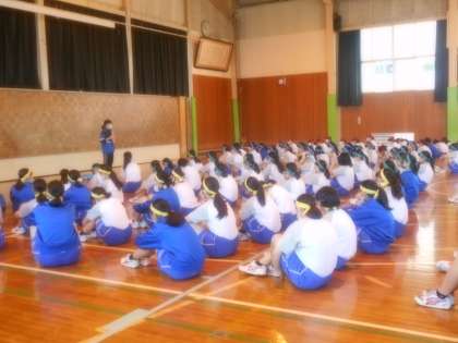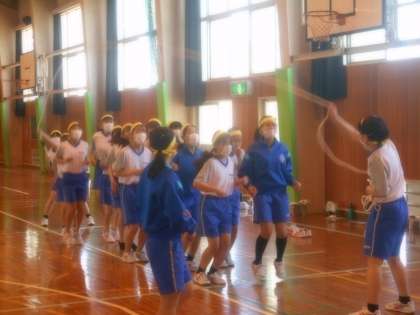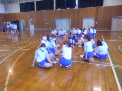 2限は男女分かれて学年競技の「みんなでジャンプ」の練習をしました。技術を高め、気持ちを合わせて競う競技です。どの団も楽しそうに取り組んでいました。