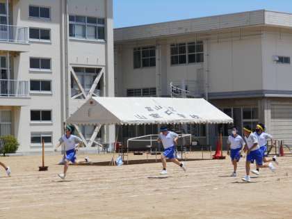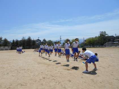 2年 学年練習その3 公開日 2021/05/28 更新日 2021/05/28 山室中学校のページ 5月28日(金) 3時間目、外でも100m走、長縄の練習を続けます。体育館より更に記録を伸ばす団も!