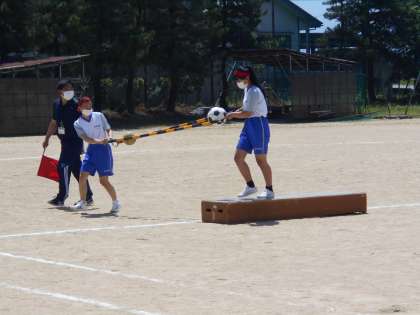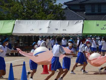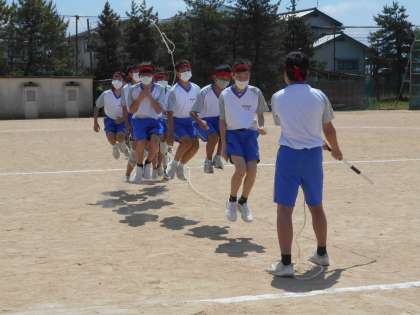 体育大会予行練習〜学年競技〜 公開日 2021/06/01 更新日 2021/06/01 山室中学校のページ 6月1日(火) どの学年も入退場、動きの確認をしています。 1年生:ウーバーボール(写真:上) 2年生:みんなでジャンプ(写真:中) 3年生:ヤーマーイーツ(写真:下)