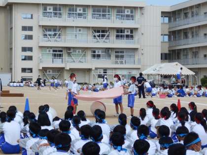 体育大会前日〜1年学年練習〜 公開日 2021/06/02 更新日 2021/06/02 山室中学校のページ 6月2日(水) 1年ウーバーボールは、昨日の予行を受けてルールが少し変更になりました。ハードルは飛び越えない、持ち手は4カ所から6カ所へ等、変更点を学年の代表が実演しています。学年競技の1位は高得点が狙えます。ぜひ各団の団結力を発揮してくださいね.
