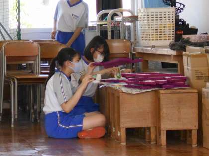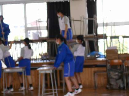 最後の最後まで 公開日 2021/06/02 更新日 2021/06/02 山室中学校のページ 6月2日(水) 美術部は、明日お披露目のデコレーションを最後まで手直ししています。また、1ヶ月近く使っていた技術室の掃除、整頓をしました。明日のデコレーション披露、お楽しみに! (写真:上、中) 実行委員は体育大会スローガンを吊して、準備完了です。実行委員の皆さん、明日もよろしくお願いします。(写真:下)