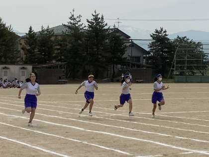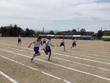 9:35 中学校生活最後の体育大会短距離走が、スタートしました。