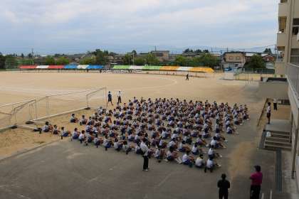 1学年 体育大会の終わりに 公開日 2021/06/03 更新日 2021/06/03 1学年 1学年は体育大会後の学年終礼で、団リーダーの頑張りを称えました。また、競技や応援、係活動など多くの場面で活躍をした1学年全員の頑張りをねぎらい、一丁締めで区切りをつけました。明日からはまた授業等で頑張ります!