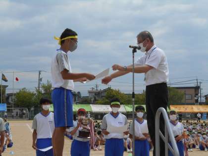 閉会式 公開日 2021/06/03 更新日 2021/06/03 山室中学校のページ 校長先生からは、山室中の仲間を応援する様子があちこちで見られる体育大会だったこと、自らの役割を果たすことができた体育大会だったとお話ししていただきました。