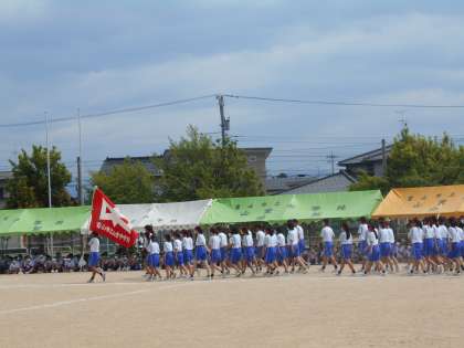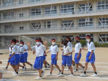赤鳳団の優勝パレードです。胸を張って、団席前を笑顔で行進します。