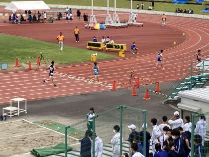 写真下:共通男子400mはラスト100mを必死に走りました。