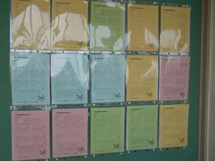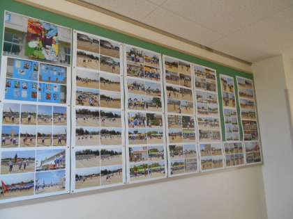 体育大会の足跡 公開日 2021/06/09 更新日 2021/06/09 山室中学校のページ 6月9日(水) 3年生の階には各団の集合写真、3年生が活躍した場面があちこちに写真で飾られています。また、廊下には体育大会を振り返っての作文が掲示されました。みなさんの感想から、体育大会を通して、3年生として成長した姿が伝わってきます。 3年生のはちまきに寄せ書きを頼まれました。仲間から仲間へ、感謝の言葉がたくさん書かれていました。