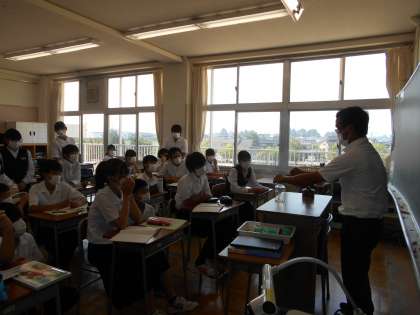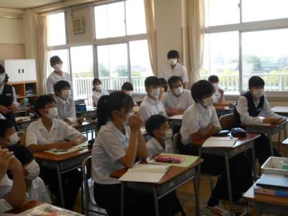 授業風景その2〜2年生〜 公開日 2021/06/10 更新日 2021/06/10 山室中学校のページ 6月9日(木) 【2年6組:理科】 マグネシウムリボンを燃やして、二酸化炭素がたっぷり入った集気瓶へ・・・さあどうなるかな?みんな先生の実験に釘付けです。