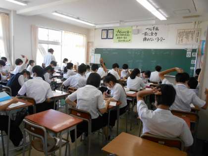 根号を使った式の計算練習をしています。終了の合図を送ると、西村先生のはんこがもらえます!