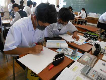近似値を求める計算練習中です。班になってお互いに教え合っています。説明する方も理解が深まります。