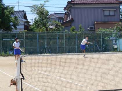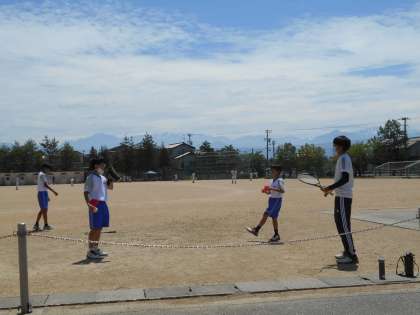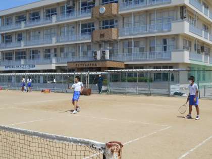 青空の下で部活動〜ソフトテニス男子〜 公開日 2021/06/12 更新日 2021/06/12 山室中学校のページ 6月12日(土) 大会も近くなり、審判もしっかりつけて試合の練習です。1年生は、顧問の谷口先生にルール等を教えてもらっています。