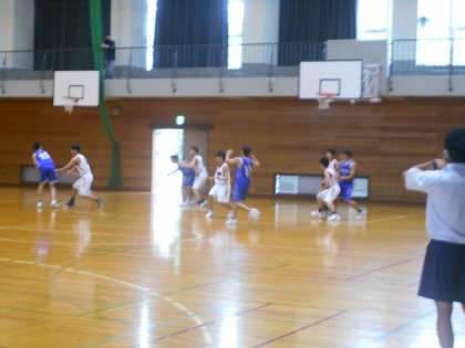 市選手権大会前の休日を利用して、男子バスケットボール部は、月岡中や大沢野中と練習試合を行いました。今回見付けた課題を、あと数日の練習で修正して、大会に臨みたいと思います。