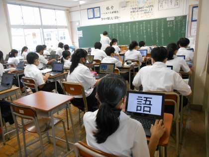 部首名をクロームブックのフラッシュカードで、各自復習しています。