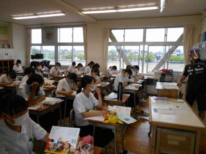 授業プリントに取り組みます。分からないところは、2人の先生に聞いたり、ペアで楽しく教え合ったりしています。