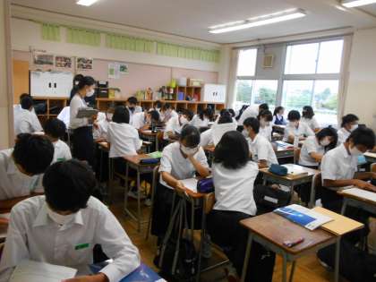エイズの予防について、保健体育ノートを使って学んでいます。