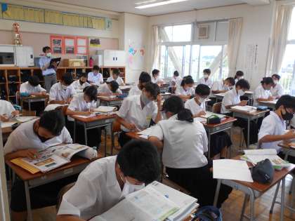授業風景1年生 公開日 2021/06/24 更新日 2021/06/24 山室中学校のページ 6月24日(木) 【1年3組:技術】 クロームブックでネットワークの仕組みを理解しよう! 【1年5組:社会】 テスト勉強で、分からないところを質問しています。 【1年6組:理科】 自主学習ノートに図を書きながらテスト勉強中!書くことによって、より理解が深まりますね。