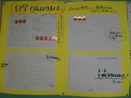 1年廊下には、英語の自主学習ノートの優秀な例が掲示されています。友達のよい点を真似て自分のノート作りに生かしていきましょう!まずは、「まねぶ」から始めてみませんか?
