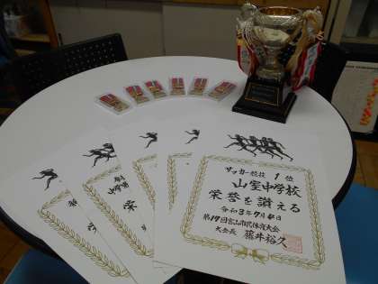 今朝職員室にはたくさんの賞状やメダル、カップなどが届きました。選手の皆さん、たくさんの感動をありがとうございました!