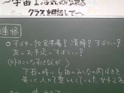 放課後教室をまわっていると、こんな黒板メッセージが・・・。